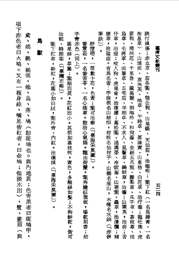 各種可療毒的台灣產中藥物產 重修臺灣府志卷十八 台灣文獻史料叢刊 -