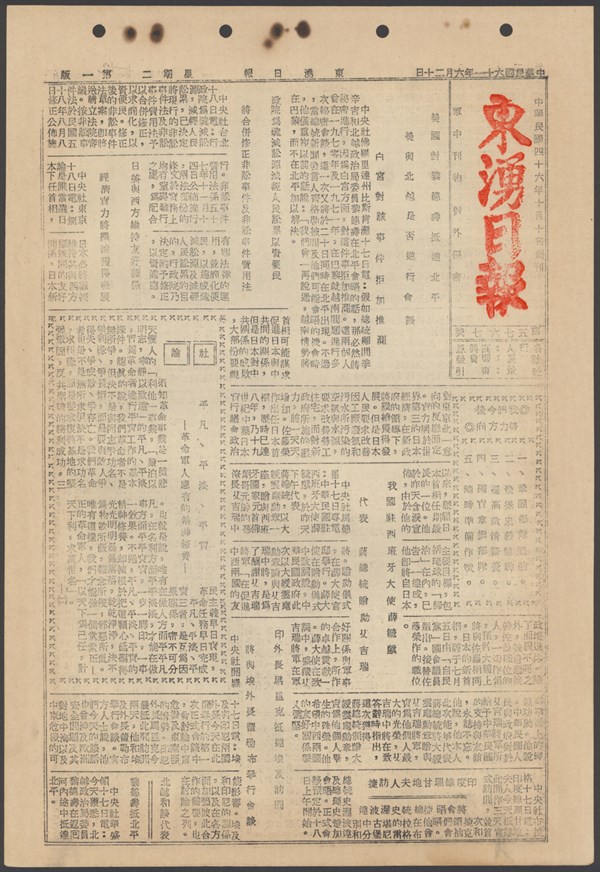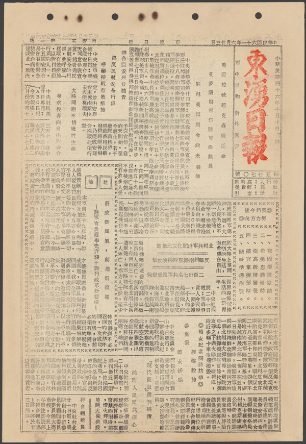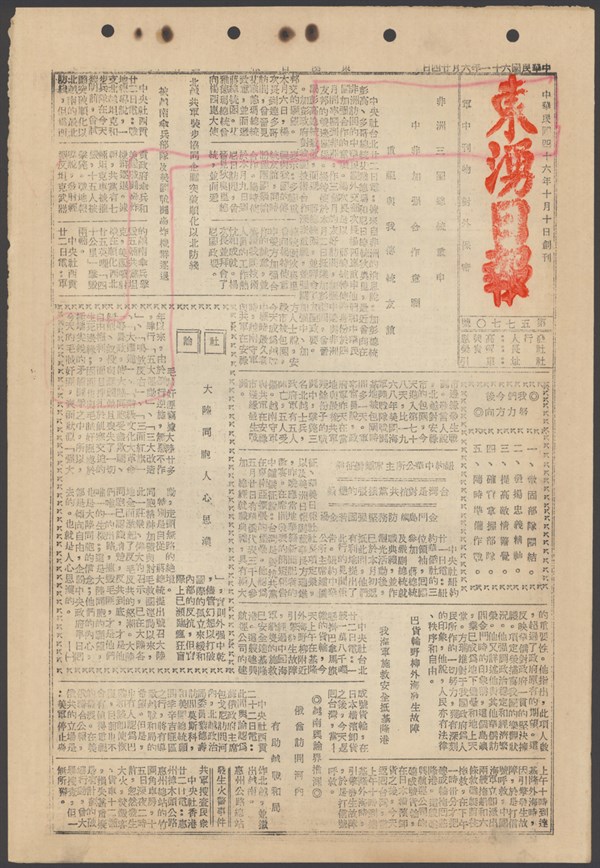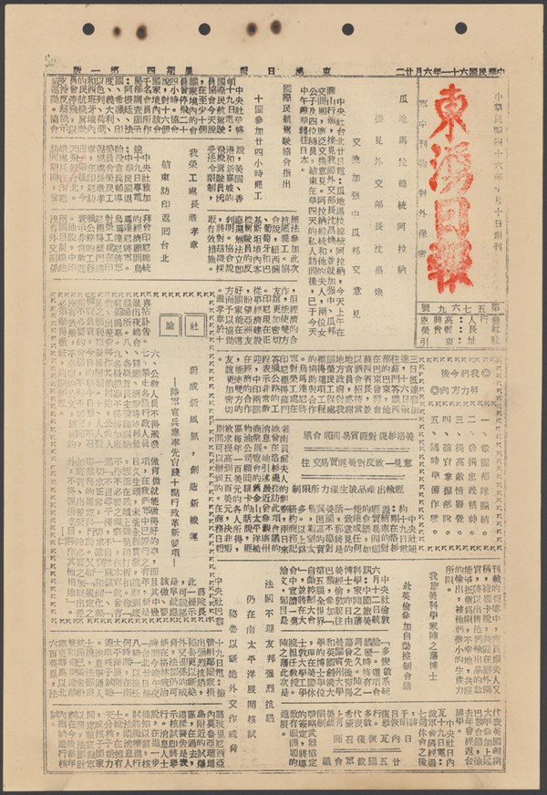 中華民國61年6月20日東湧日報第五七六七期第一版 -