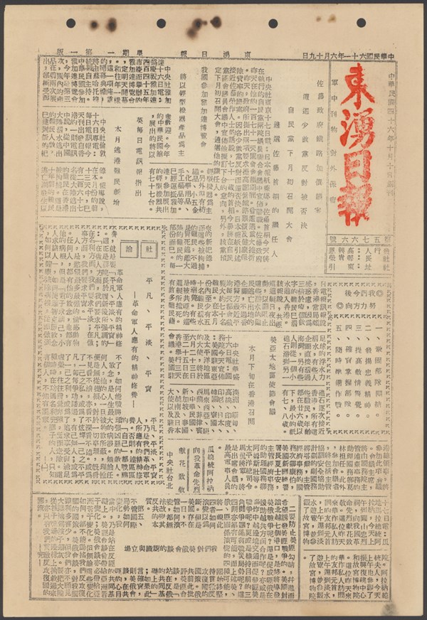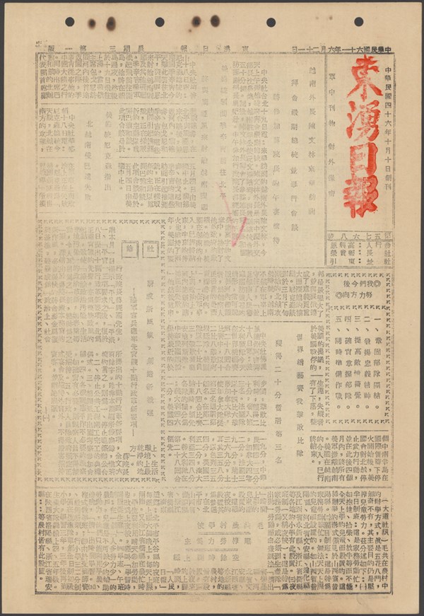 中華民國61年6月19日東湧日報第五七六六期第一版 -