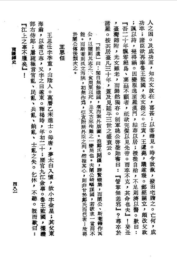鄭經繼位,沈光文隱居,以教學、行醫過活 南疆繹史第四冊(繹史摭遺) 台灣文獻史料叢刊 -