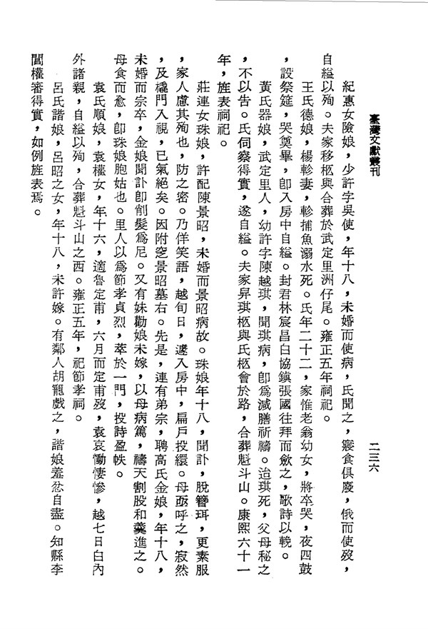 勸娘割大腿肉和羹給生病的母親吃,吃完疾病痊癒 續修臺灣縣志卷三 台灣文獻史料叢刊 -