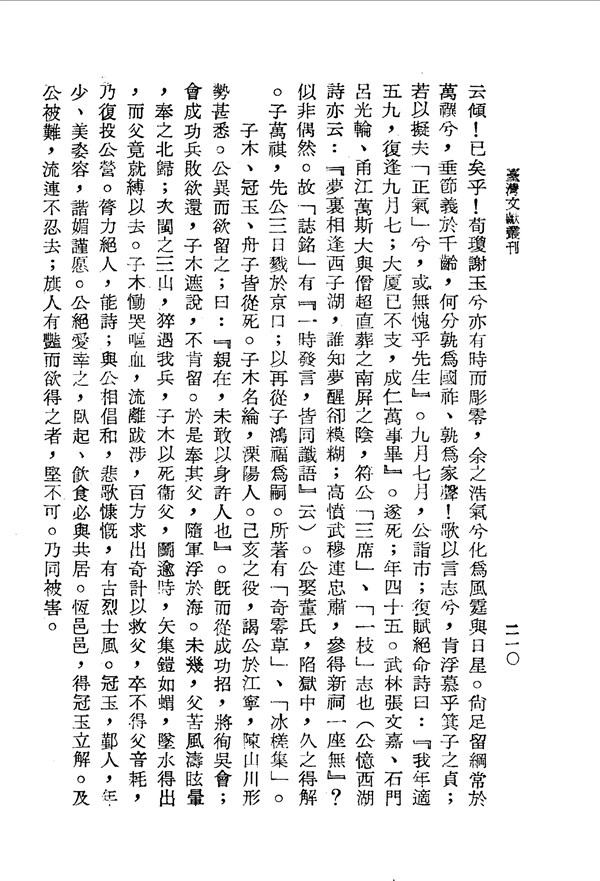 子木因慟哭過度而嘔血 張蒼水詩文集附錄一 台灣文獻史料叢刊 -