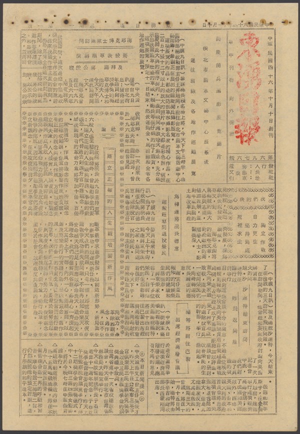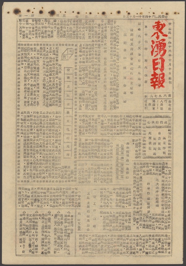 中華民國64年11月10日東湧日報第六九七六期第一版 -