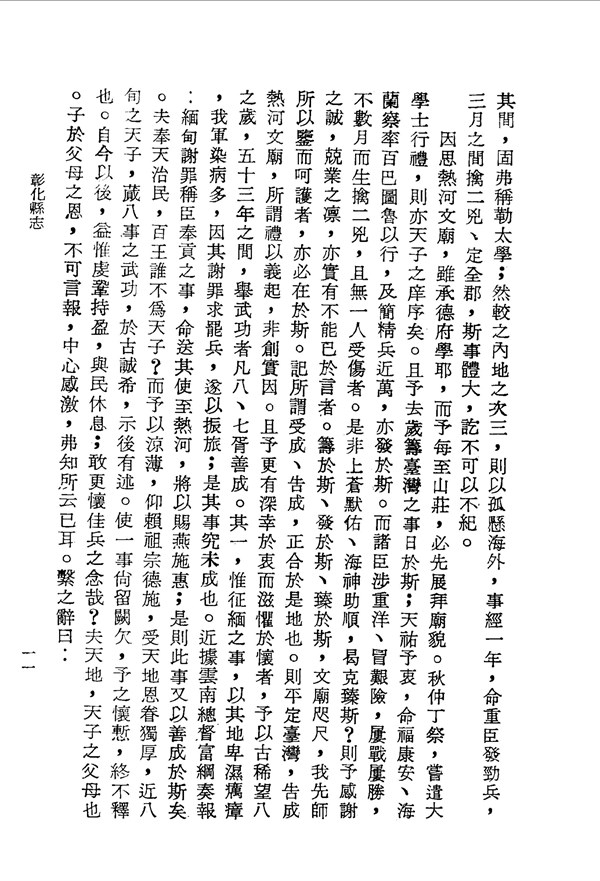 士兵在緬甸因氣候潮濕、瘴氣重而生病 彰化縣志序、例言、贊序、碑文、紀事語、詩、纂修職銜 台灣文獻史料叢刊 -