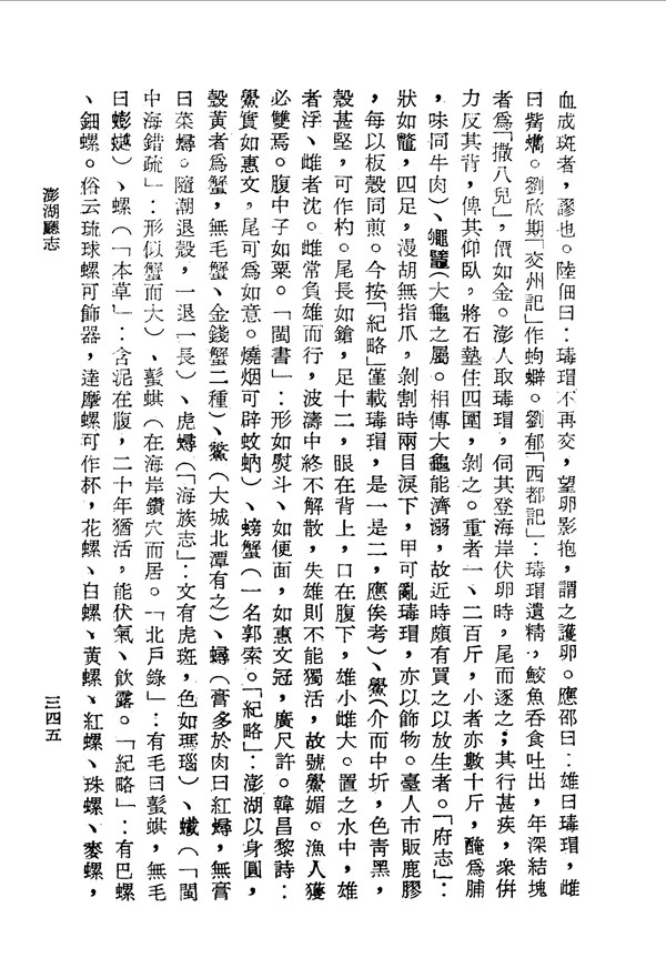 焚燒鱟時產生的煙可辟蚊蟲 澎湖廳志卷十 台灣文獻史料叢刊 -