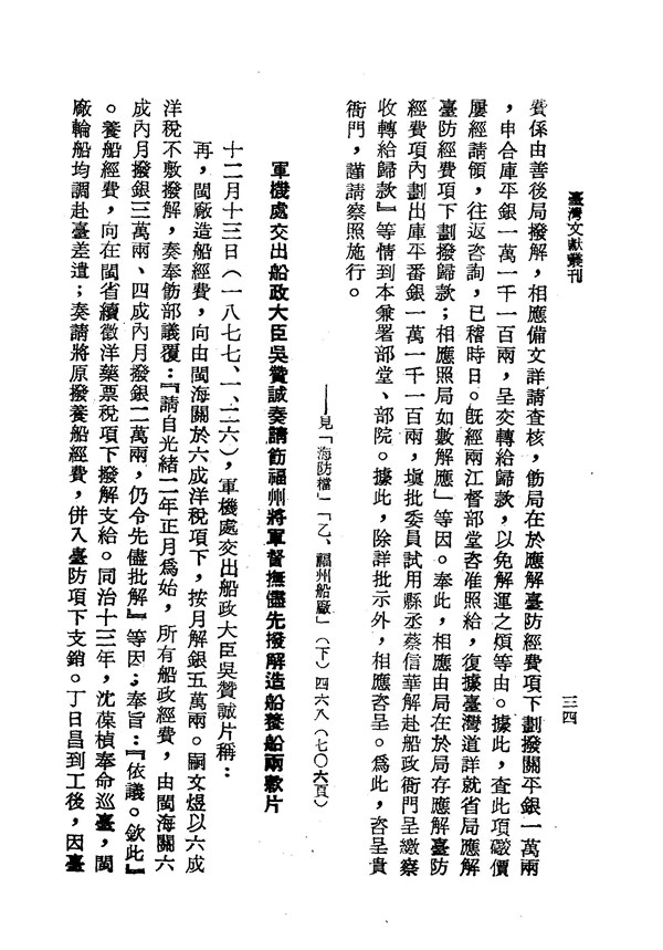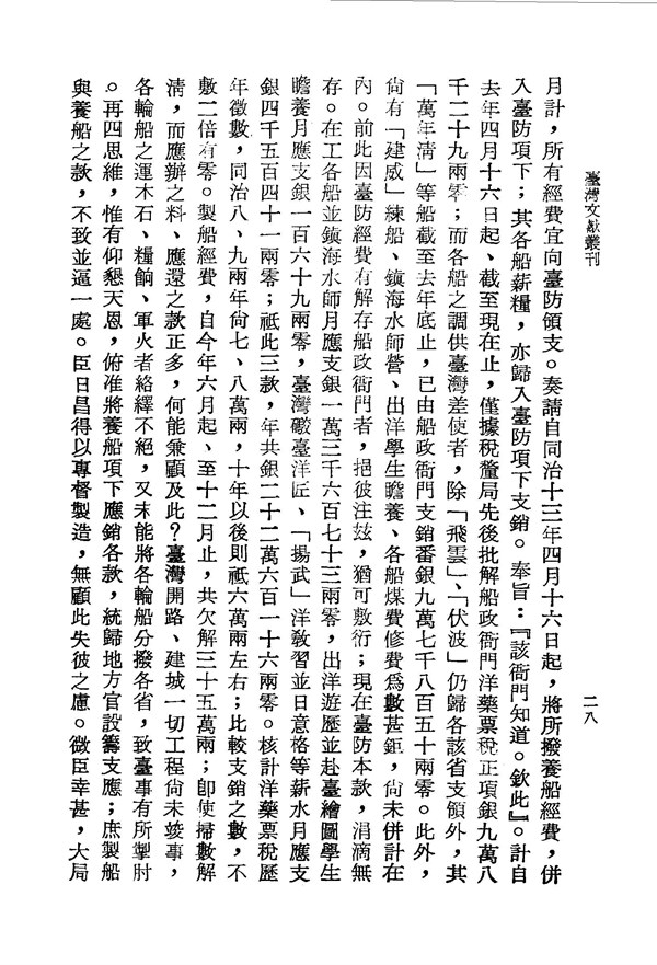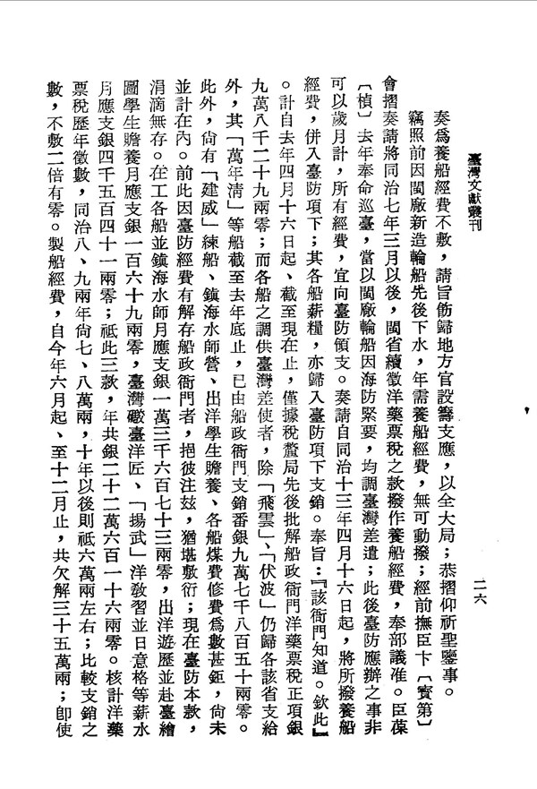 沈葆楨申請新造輪船之養船經費 臺灣海防檔 台灣文獻史料叢刊 -