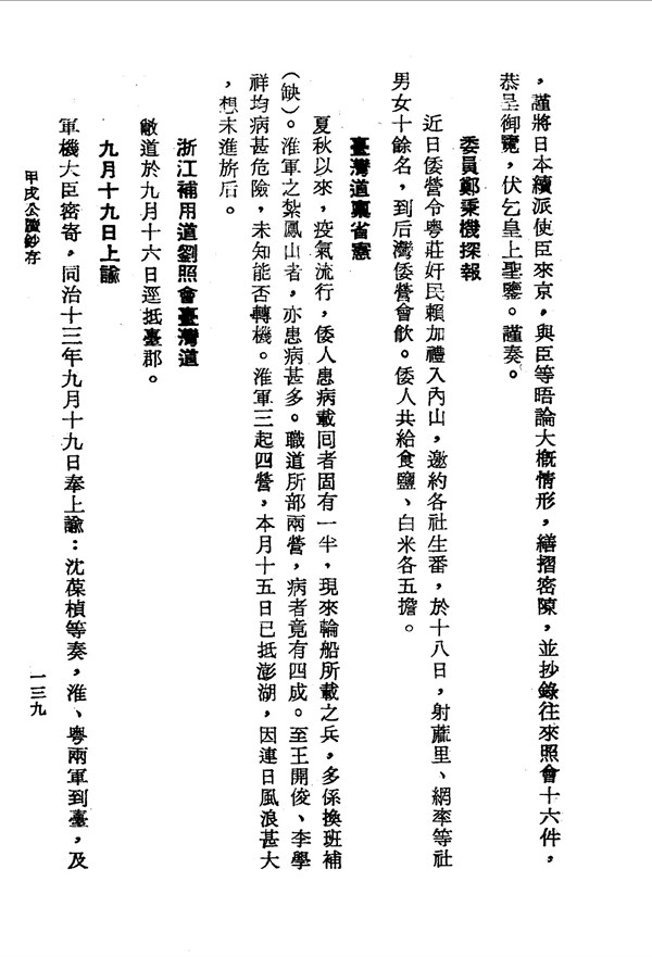 夏秋以來疫氣流行,患病甚多 甲戌公牘鈔存 台灣文獻史料叢刊 -