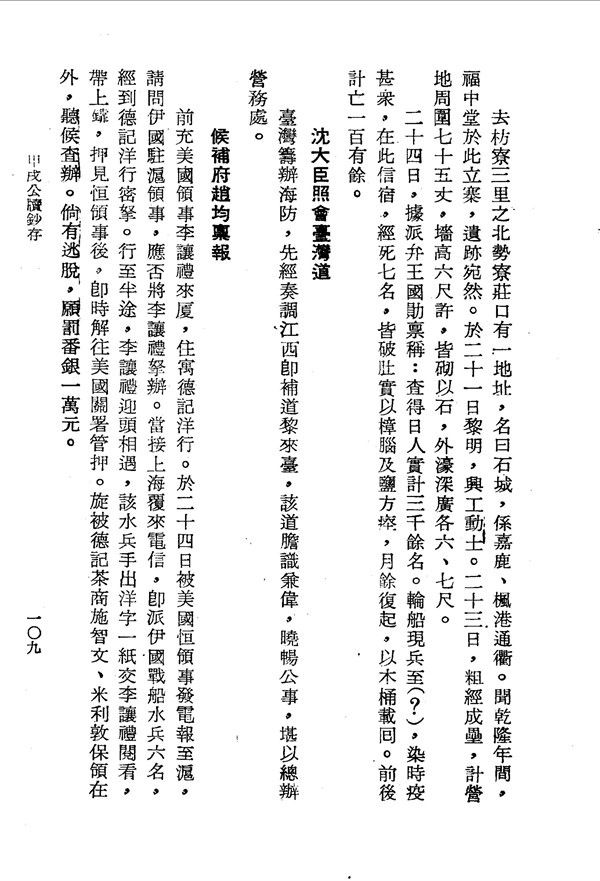 染時疫甚眾,前後計亡一百有餘 甲戌公牘鈔存 台灣文獻史料叢刊 -