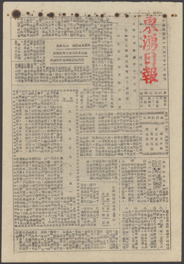 中華民國64年11月15日東湧日報第六九八一期第一版 -