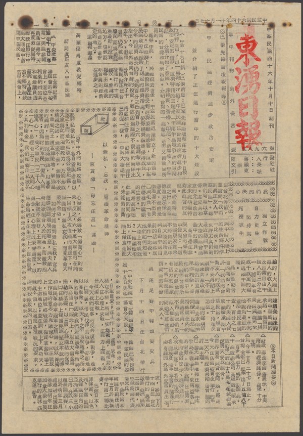 中華民國64年11月18日東湧日報第六九八四期第一版 -