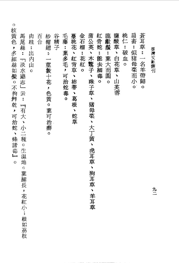 夏枯草治癭癧濕痺 噶瑪蘭廳志卷六 台灣文獻史料叢刊 -