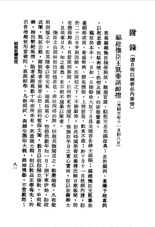 王凱泰在臺感瘴癘,因病出缺 福建臺灣奏摺 台灣文獻史料叢刊 -