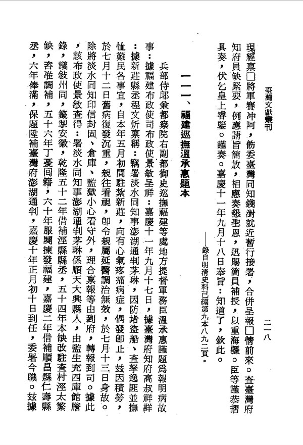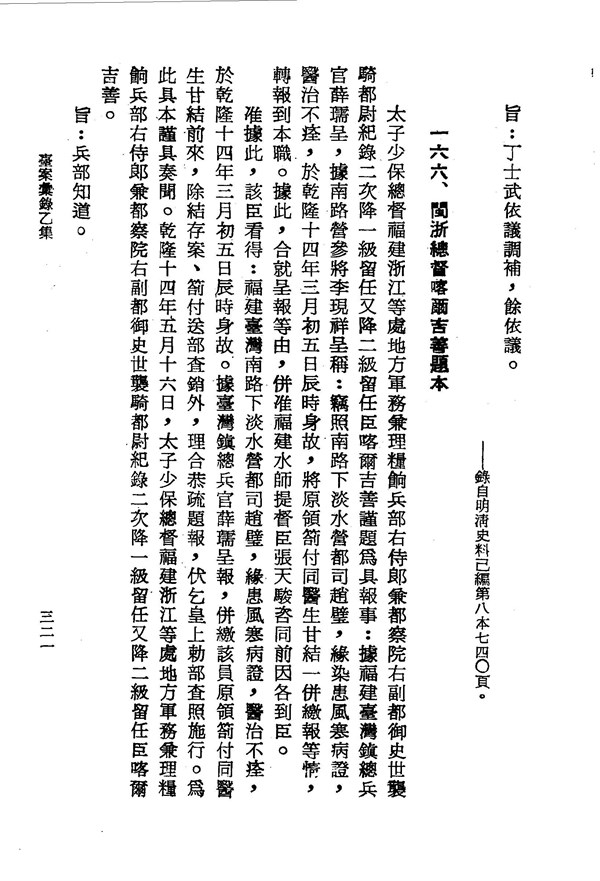 黃仕簡患風疾未痊癒 清高宗實錄選輯選輯(二) 台灣文獻史料叢刊 -