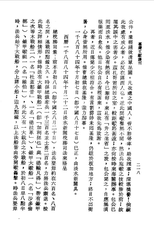 包公感染熱病 法軍侵臺檔 台灣文獻史料叢刊 -