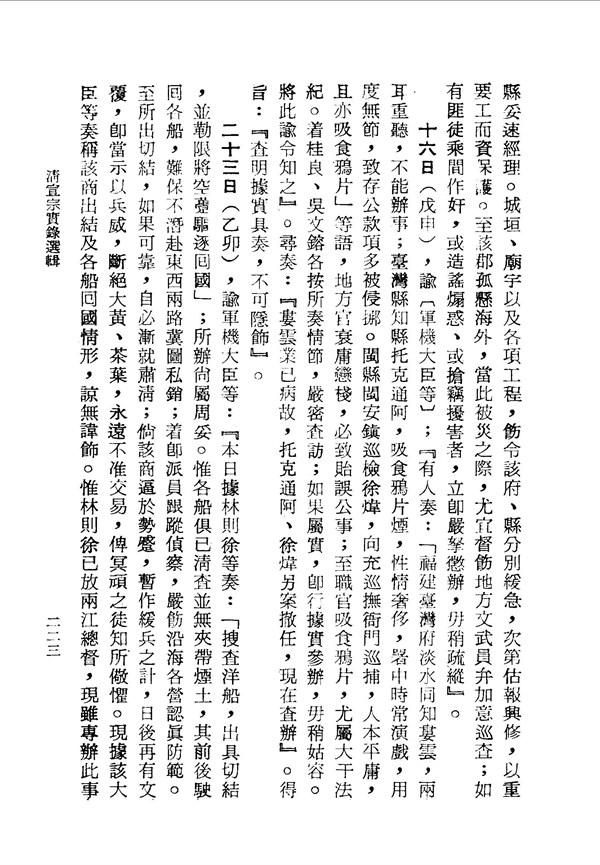 中國官員因吸食鴉片而慵懶無作為 清宣宗實錄選輯選輯(二) 台灣文獻史料叢刊 -