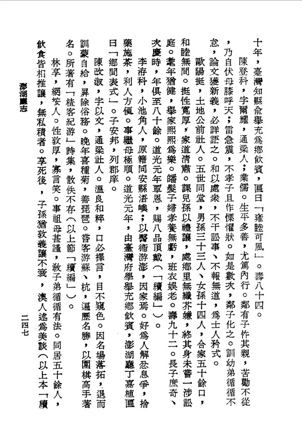 李洊科在澎湖行醫,經常贈醫施藥 澎湖廳志卷七 台灣文獻史料叢刊 -