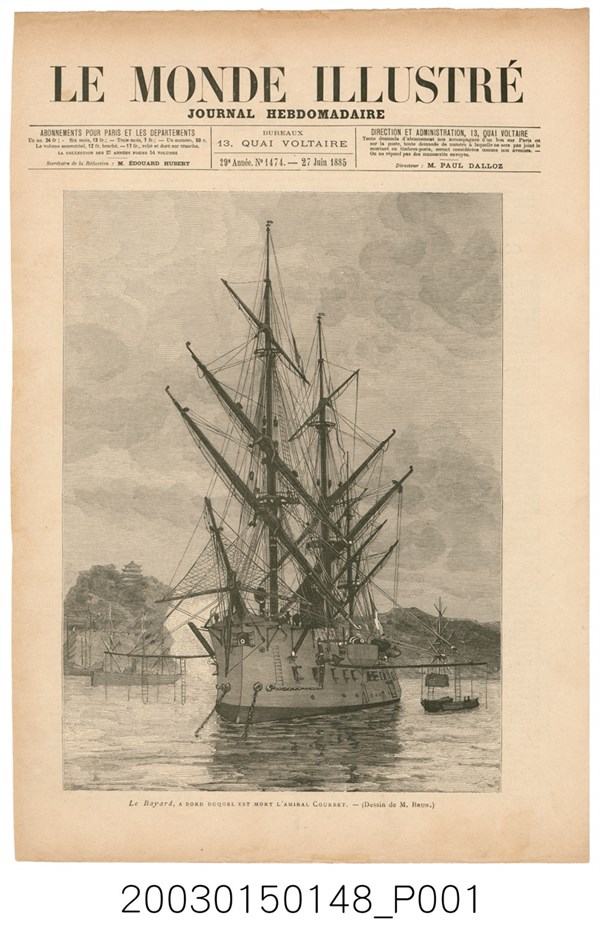 1885年6月27日法國《世界畫報》封面 Bayard號,孤拔中將過世之處 -