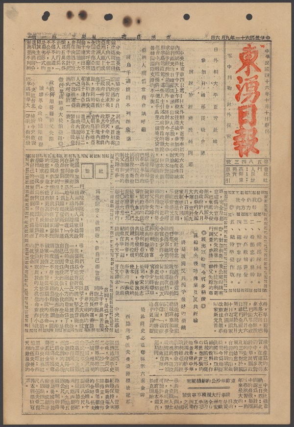 中華民國61年9月9日東湧日報第五八四六期第一版 -