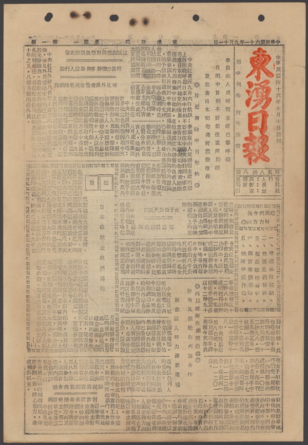 中華民國61年9月10日東湧日報第五八四七期第一版 -