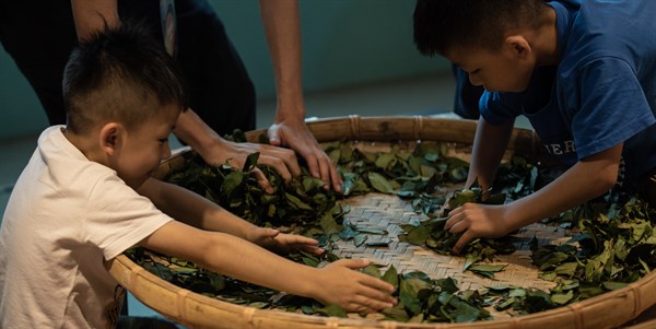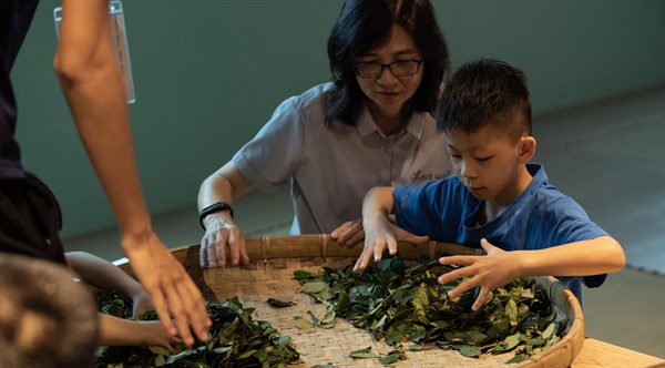 2019年4月25日臺灣文博會工藝館,茶3.1415展場內,小朋友參與揉茶活動 -