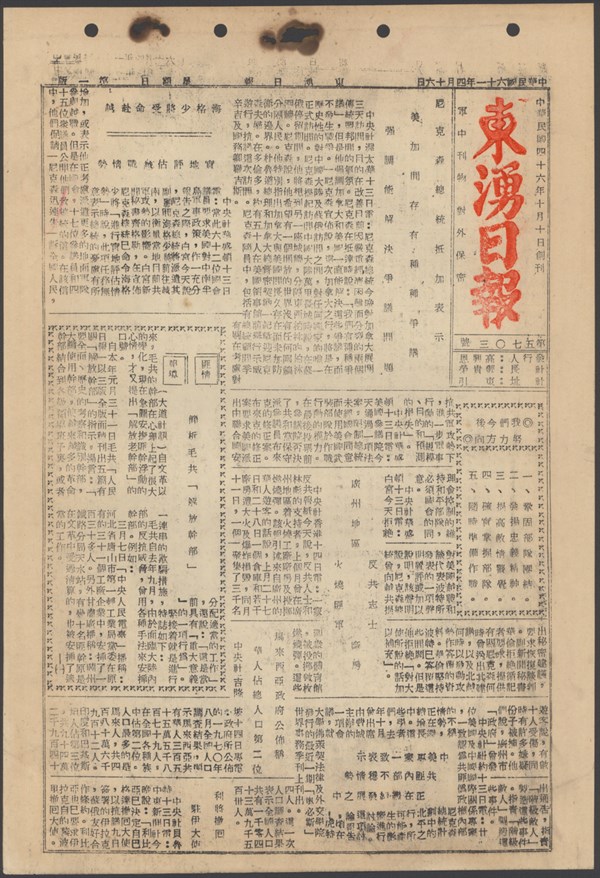 中華民國61年4月13日東湧日報第五七○○期第一版 -