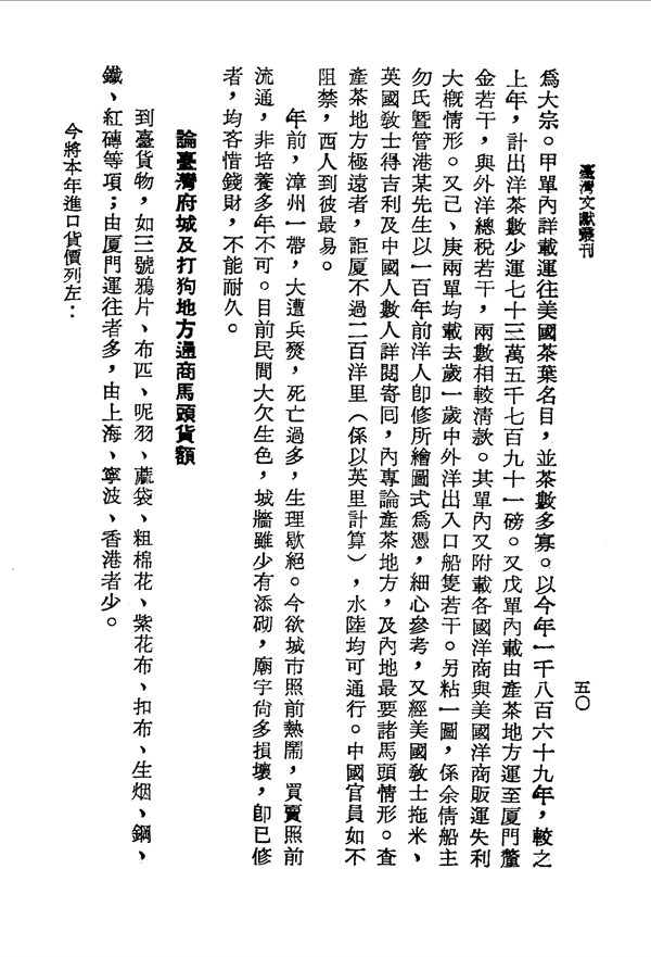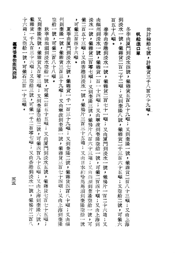 淡水基隆進貨物多由廈門運來 臺灣番事物產與商務 台灣文獻史料叢刊 -