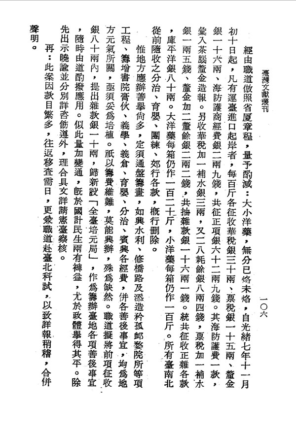 洋藥稅釐常用百貨不同應更正 巡臺退思錄卷二 台灣文獻史料叢刊 -