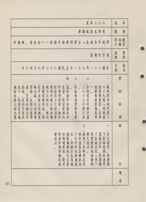 82年度陸軍反共救國軍-因應中共發表台灣問題與中國統一白皮書,戰備兵棋推演 -