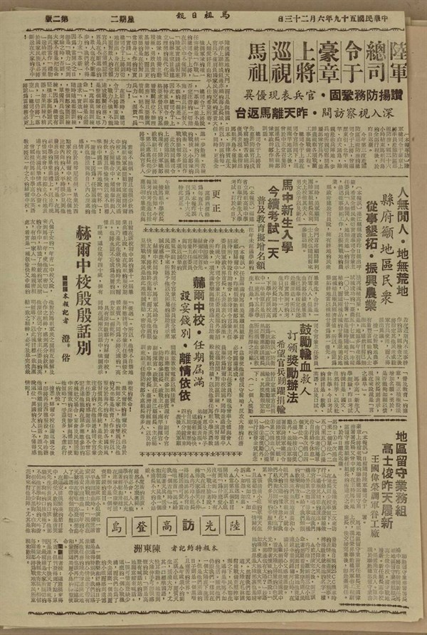 民國59年馬祖中學感謝美軍顧問團首席顧問於高中部擔任英語講師-《馬祖日報》