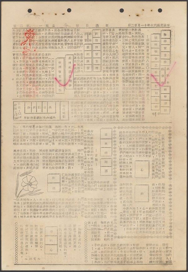 中華民國60年11月18日東湧日報第五五六○期第二版 -