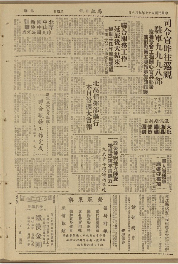 民國57年馬祖戰地政務委員會決定協助保送返鄉學子安排就業-《馬祖日報》 -