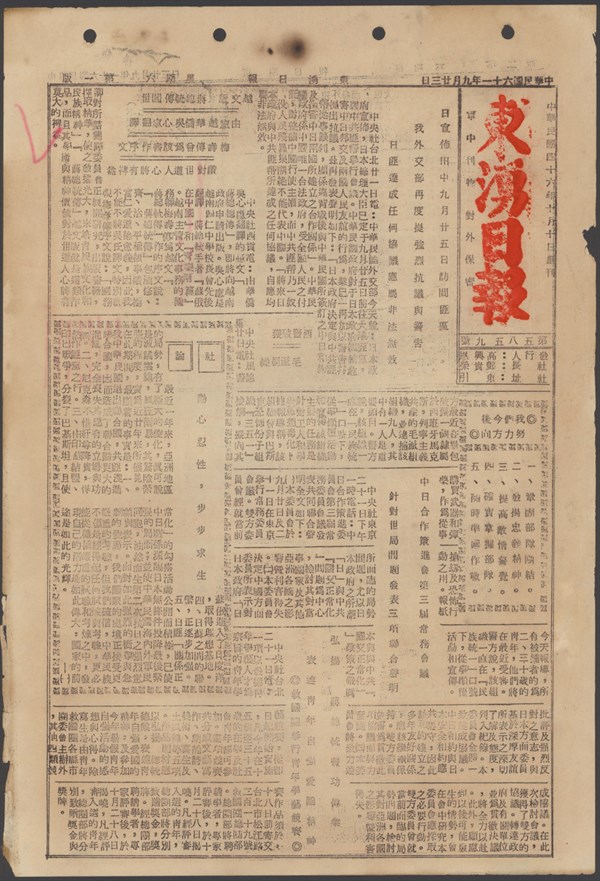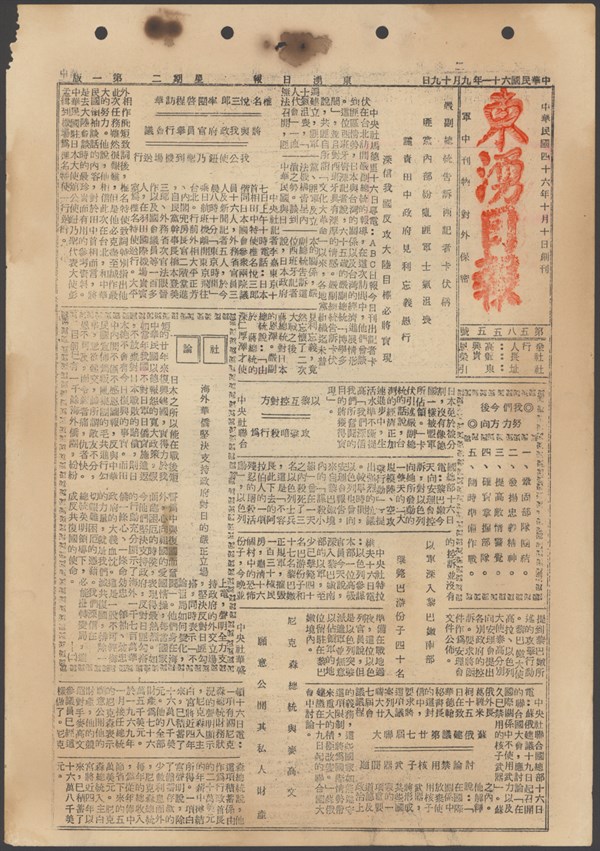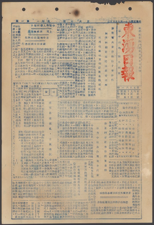 中華民國61年9月20日東湧日報第五八五六期第一版 -