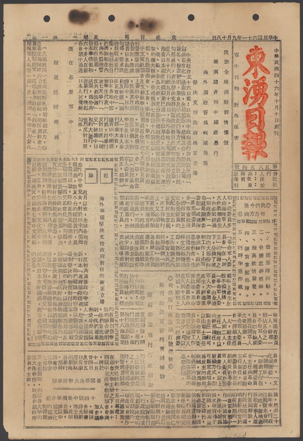 中華民國61年9月18日東湧日報第五八五四期第一版 -