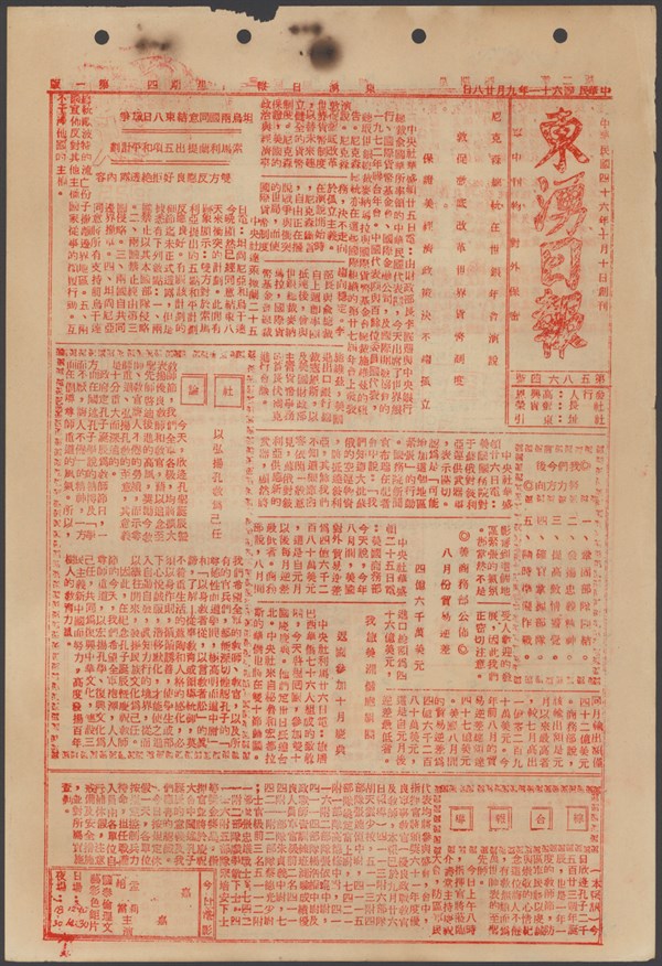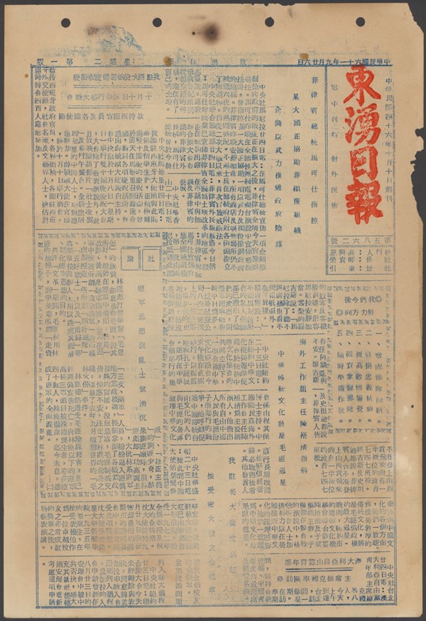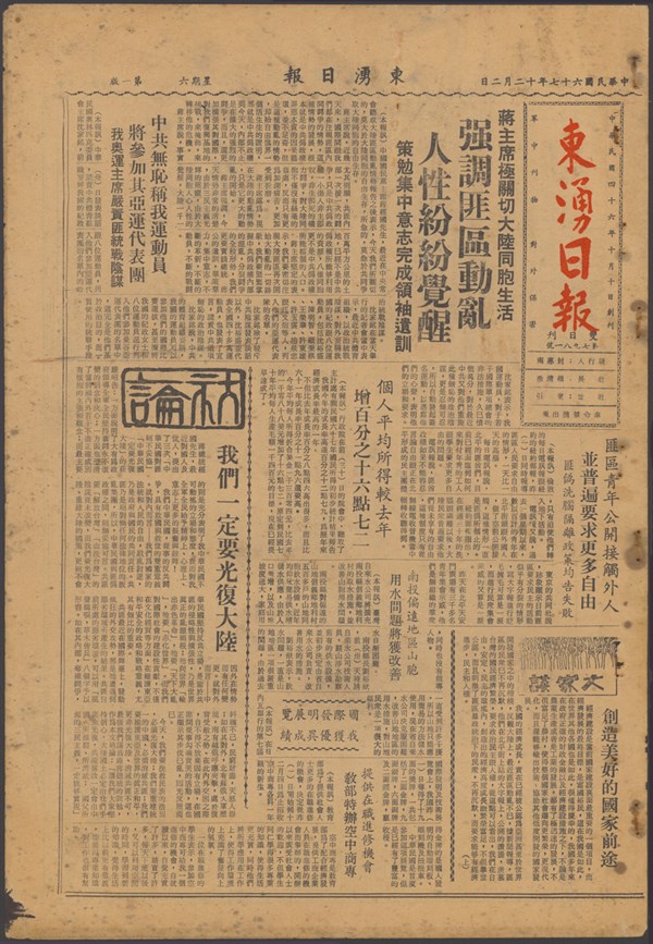 中華民國61年9月30日東湧日報第五八六七期第一版 -