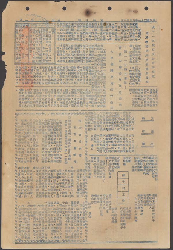 中華民國61年9月25日東湧日報第五八六一期第二版 -