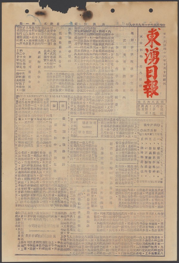 中華民國61年9月29日東湧日報第五八六五期第一版 -