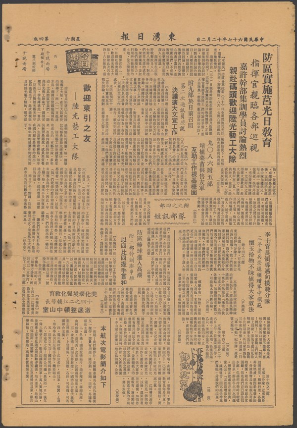 中華民國67年12月6日東湧日報第七九八三期第四版 -