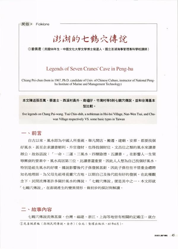 《硓古石》季刊第15期-澎湖的七鶴穴傳說 -