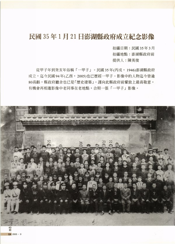 《硓古石》季刊第40期〈民國35年1月21日澎湖縣政府成立紀念影像〉 -