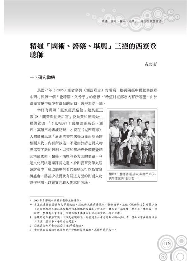 《澎湖研究學術研討會論文輯》第九屆〈精通「國術、醫藥、勘輿」三絕學的西寮登聰師〉 -