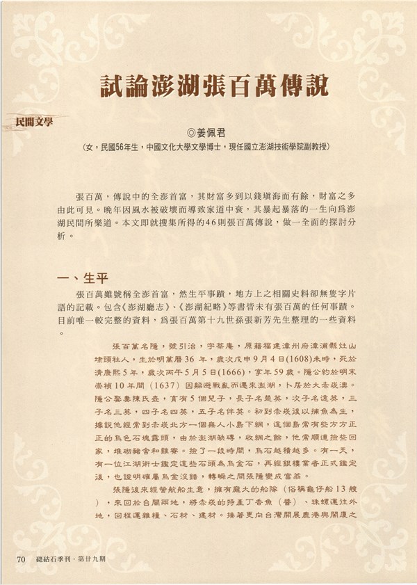 《硓古石》季刊第29期-試論澎湖張百萬傳說 -