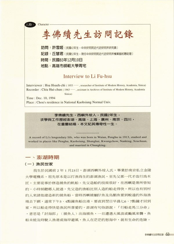 《硓古石》季刊第24期〈李佛續先生訪問紀錄〉 -