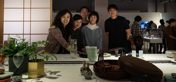 2019年4月27日臺灣文博會工藝館,茶3.1415展場論壇演講者葉怡蘭與策展團隊於「器」區前合影