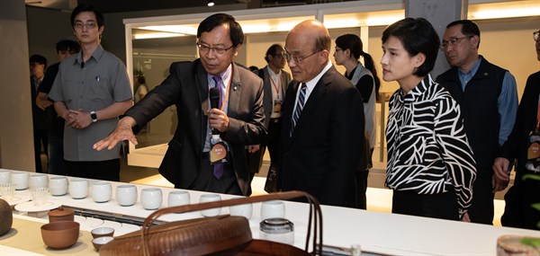 2019年4月24日行政院長蘇貞昌蒞臨臺灣文博會工藝館,茶3.1415展場「器」區展區參觀 -