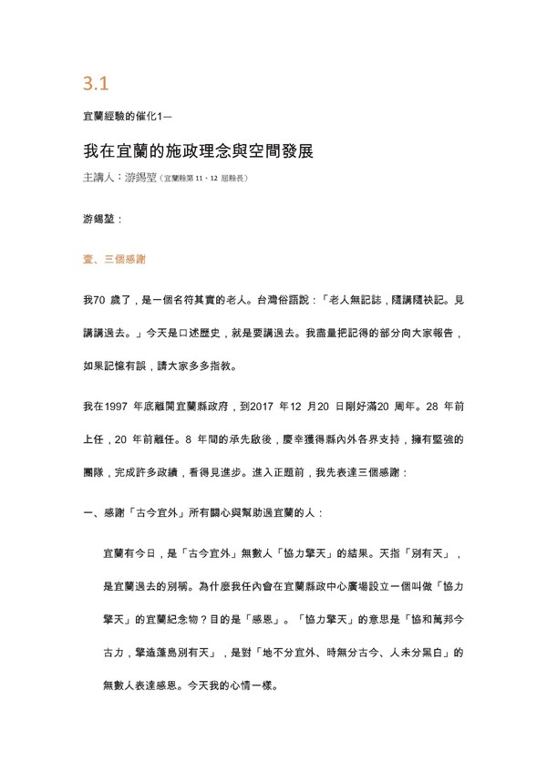 宜蘭經驗的催化3.1--游錫堃縣長時代的施政理念與空間發展(逐字稿) -