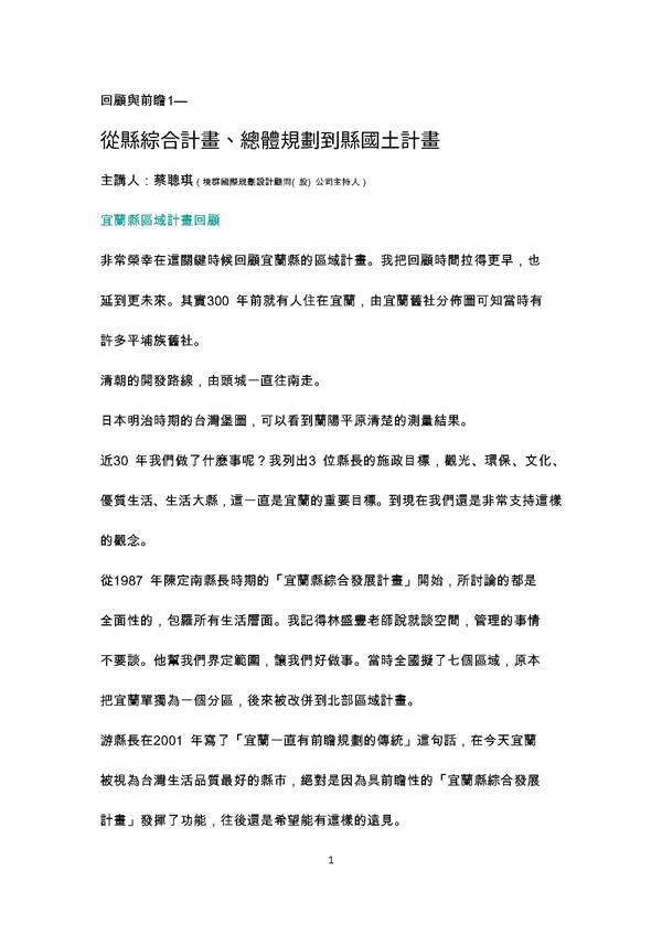 回顧與前瞻1.1--從縣綜合計畫、總體規劃到縣國土計畫(逐字稿) -