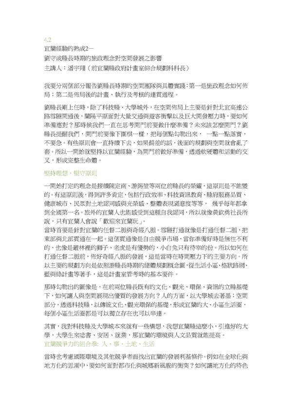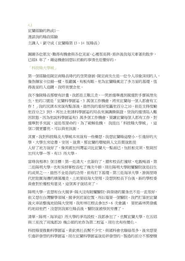 宜蘭經驗的熟成4.2--劉守成縣長時期的施政理念與對空間發展之影響(逐字稿) -