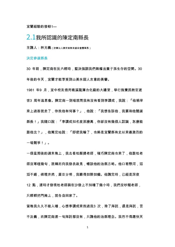 宜蘭經驗的發軔2.1--我所認識的陳定南縣長(逐字稿) -