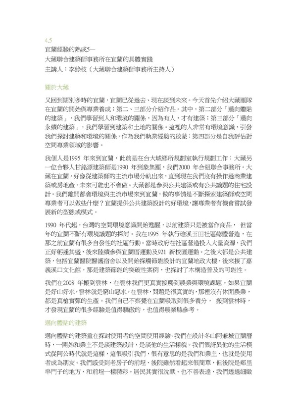 宜蘭經驗的熟成4.5--大藏聯合建築師事務所在宜蘭的具體實踐(逐字稿) -