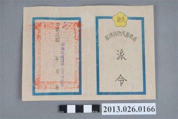 1955年8月31日高雄縣民防指揮部派林森源為茄萣鄉民防團團長派令 -